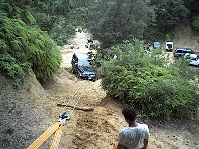 4輪デフロックしたまま4輪とも空転、身動き不能に陥いってしまった。