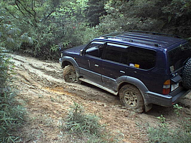 轍の壁にタイヤを押しつけてグリップを得るという方法も有るけど、この泥とタイヤの組み合わせでは、慣性を殺さないやり方の方が良かったみたい。