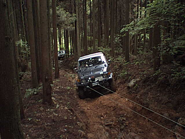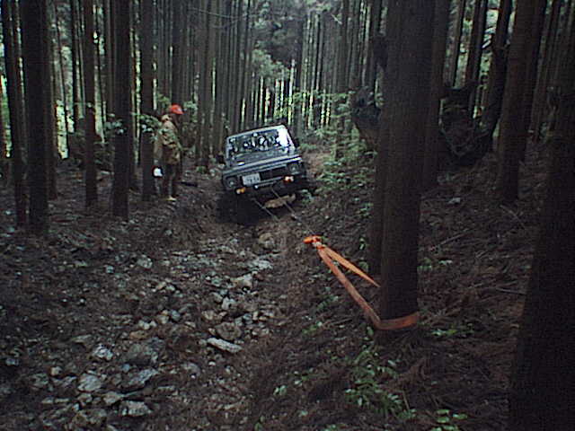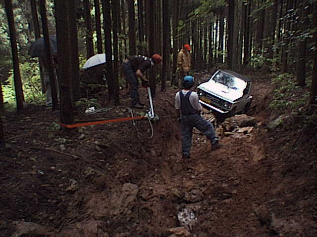 ついには、先行のサファリのウインチを使って引き上げることに。
