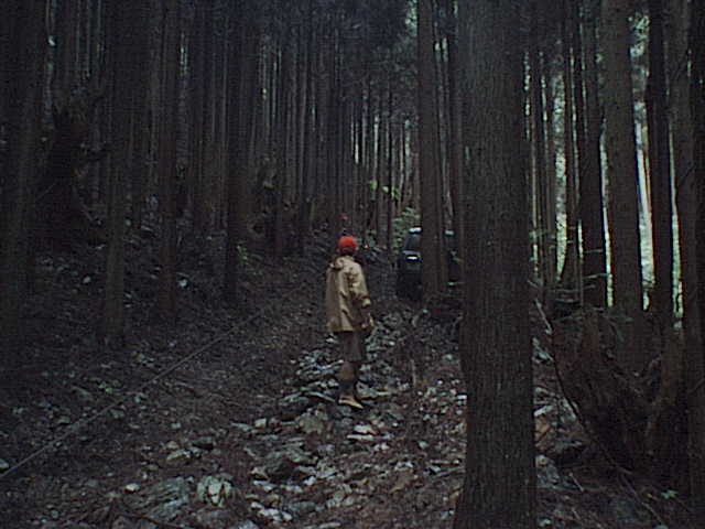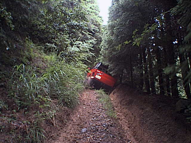 今度は片側の轍が深く掘れた急な登り。