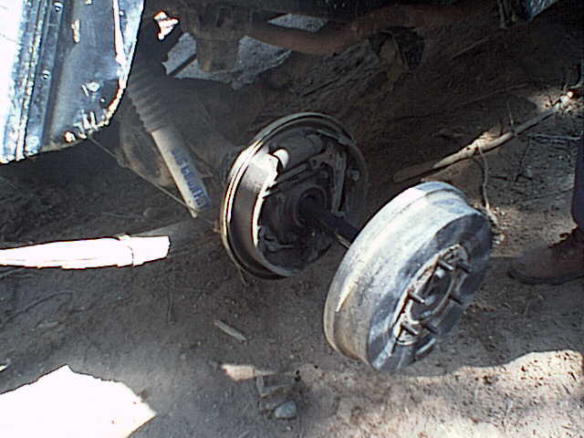 ブレーキドラムを引っ張るとドライブシャフトが根元から抜け出てきました。
