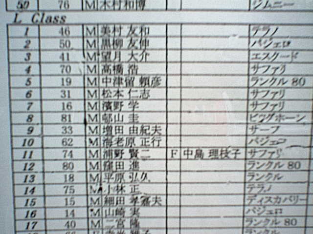 リザルト表(ロングクラス)