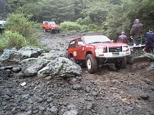 岩場を進むサファリに2駆のジムニーで着いていく。