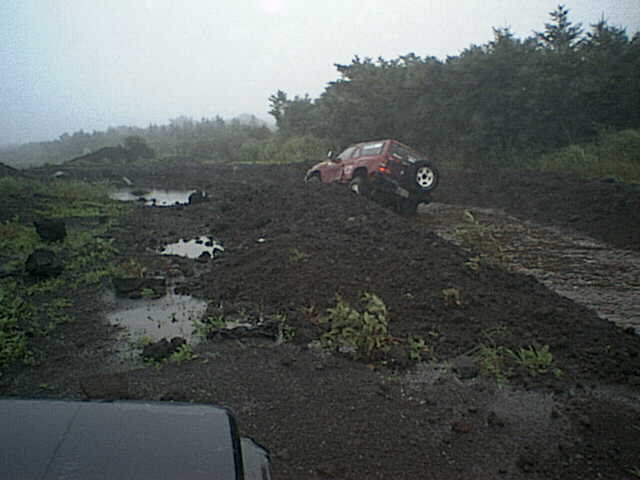 岩場の下も轍が掘れてしまい自走困難になってしまった。