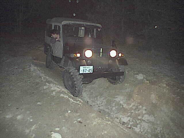 普段は赤いランクル70幌に乗る彼ですが、今日は通勤用?Jー53で遊ぶ。