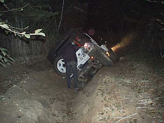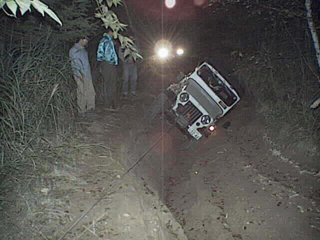 ウインチで引っこ抜いた。転ばないように後続車のウインチで支えもとってます。