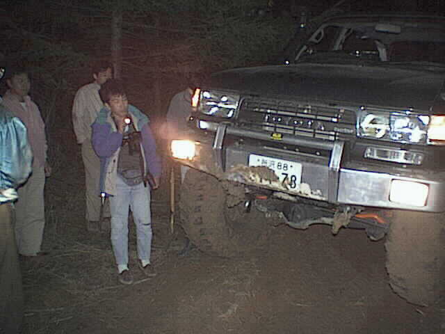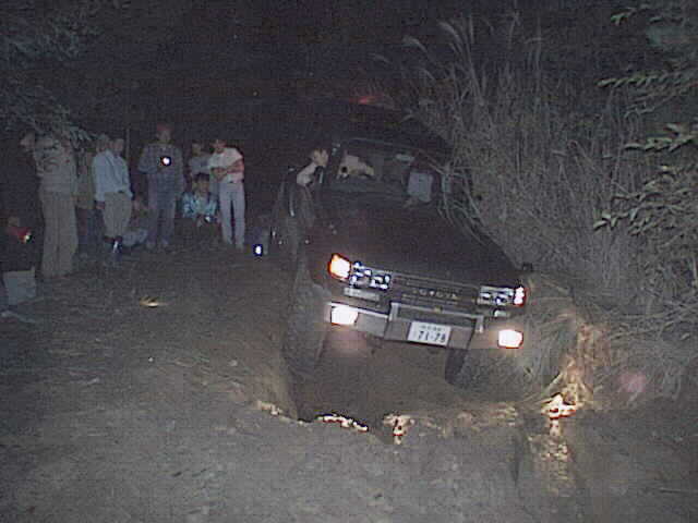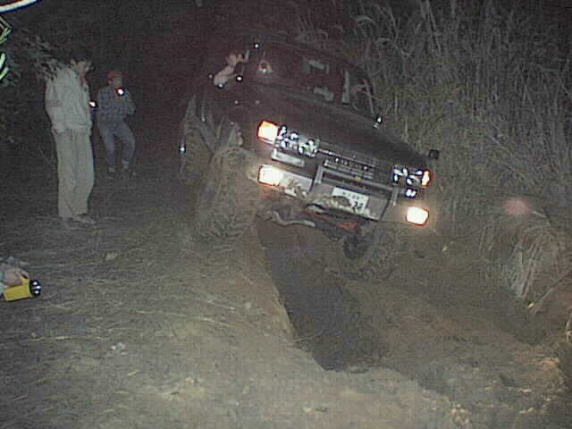 ウインチで後ろに抜いて仕切り直し、2回目は無事泥沼を跨いで越えていきました。