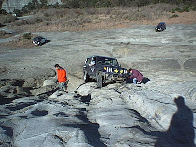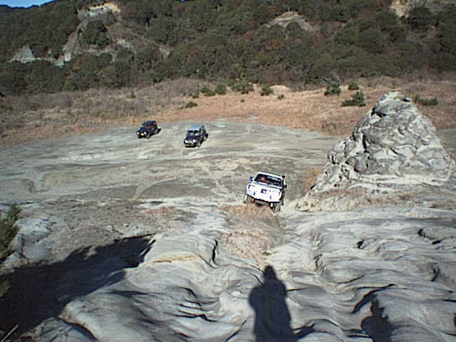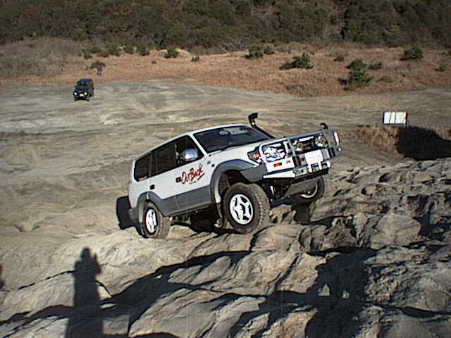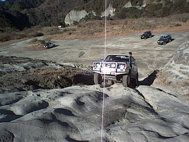 先行の私のジムニーは向かって右側の壁にタイヤを掛けながらクリアしたのだが、その時にボディを擦っているのを見ていたので、車を傷めないラインを思案中。