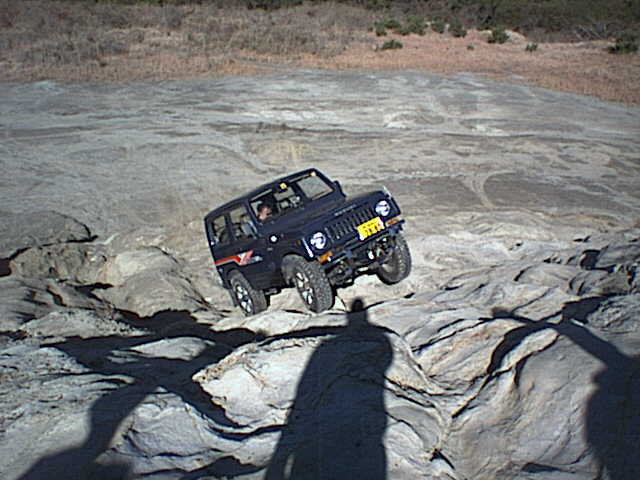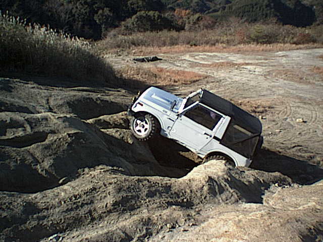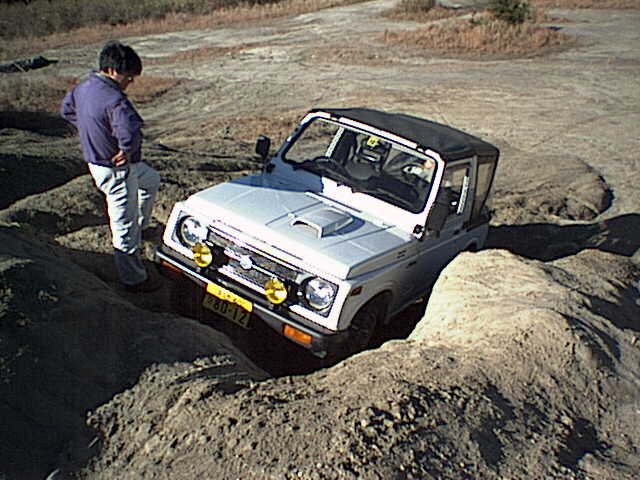 岩の窪みを乗り越えようとする丹羽さん操るJA-11Cジムニー。