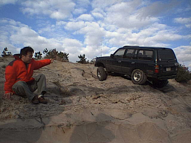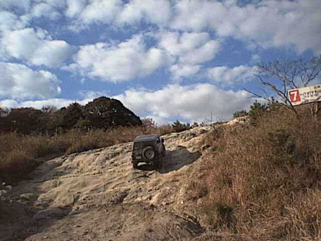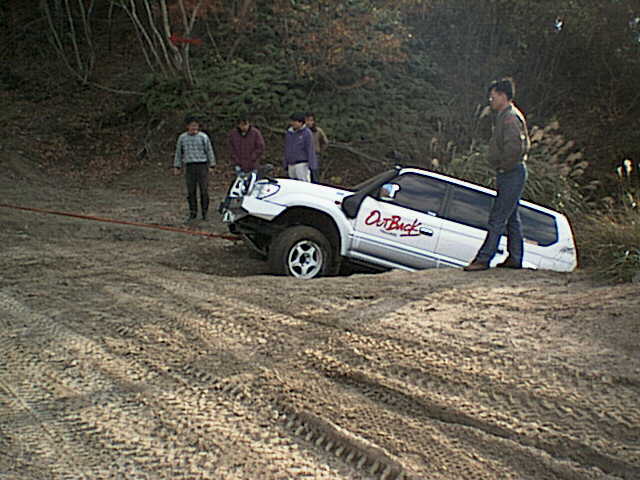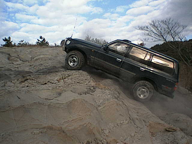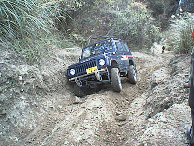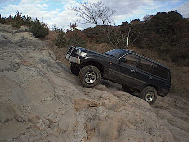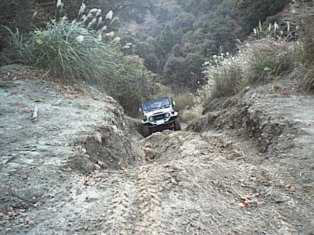 この後を着いていって、ちょっと難しいラインであがいていたらウチのジムニーのシャフトが逝っちゃいました。そこで易しいラインに切り替えて登ろうとしたんだけど、すでに車が登りきれる状態では無くなっていました。あぁ悲しい。