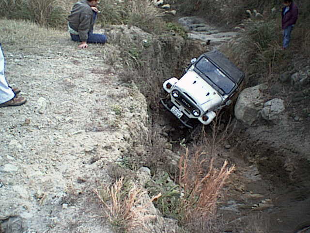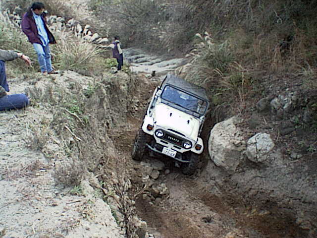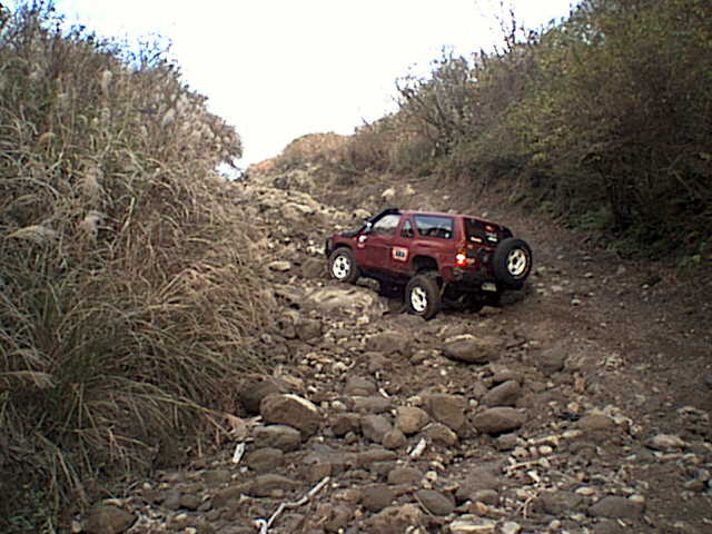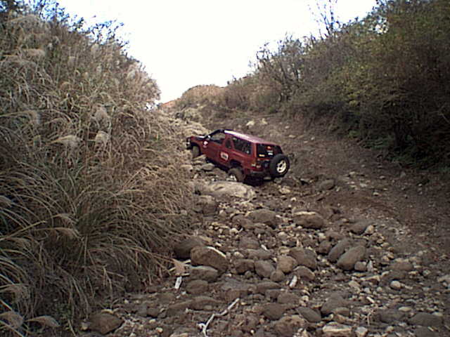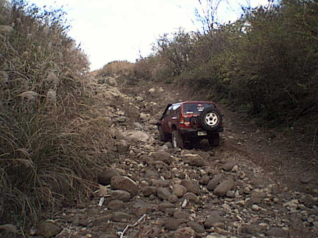スーパーVを登ってくる。サファリの車幅ではこの大岩でボディを痛めるので脇道に抜ける。