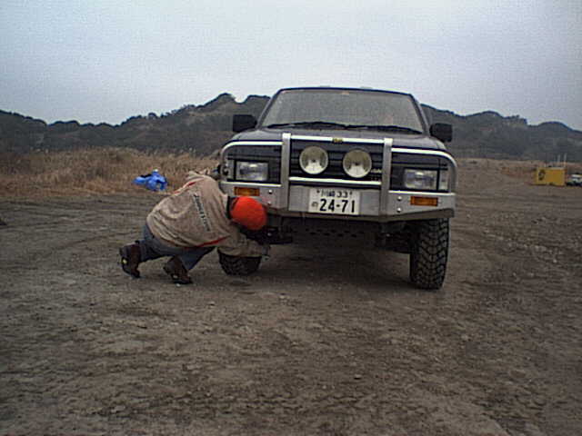 近づいてよく見るとスタックしてハイリフトジャッキで脱出中だった。
