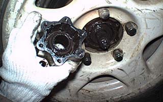 「フタ」を開けるとドライブシャフトの端のスプラインの部分が顔を出します。