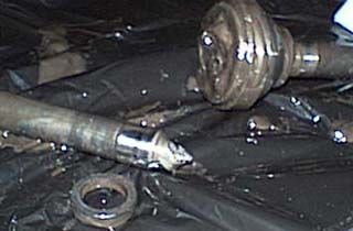 ステアリングが切れなくなっているときはCVジョイントの笠の部分が割れていることが多いが、今回は無事。