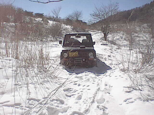 ウチのジムニーも雪と戯れていたらずっぽりスタック。ウインチで前進。