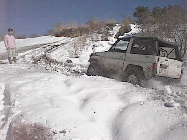 ヒルクライムを登る「サキちゃん」のサファリ。深い雪に苦労しながらも登り切ってしまう。