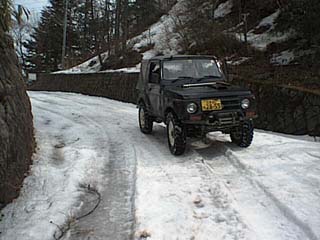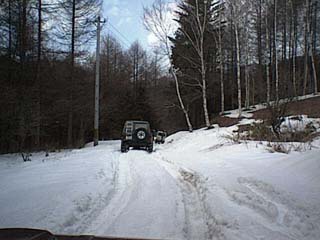 峠に到着。今年は雪が少なくノーチェーンでここまで来れた。