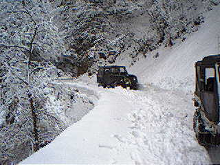 振り返ると追いついてきた後続車が彼方でスタックしている。