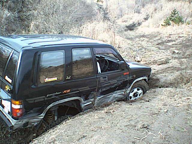移動中になかなかついてこないので様子を見に行くと、わざわざ路肩の溝にはまって遊んでいた。