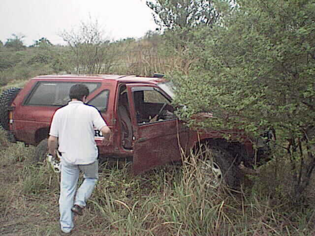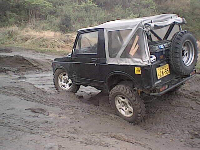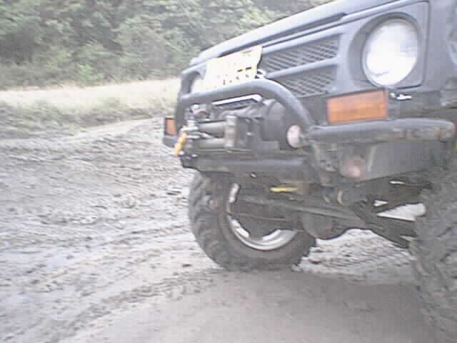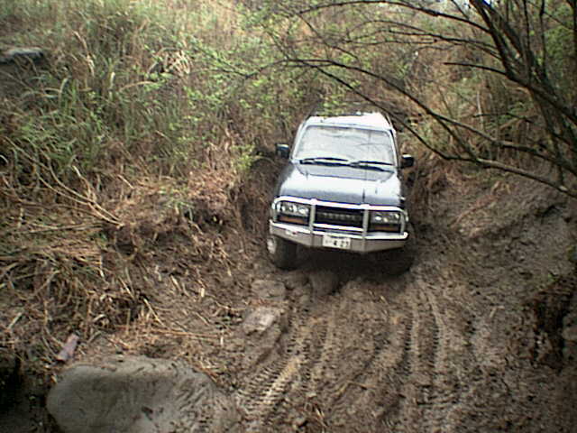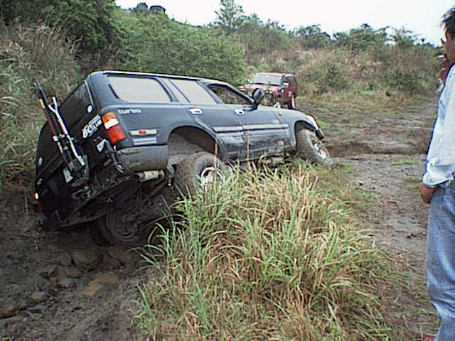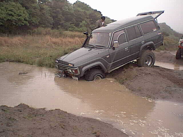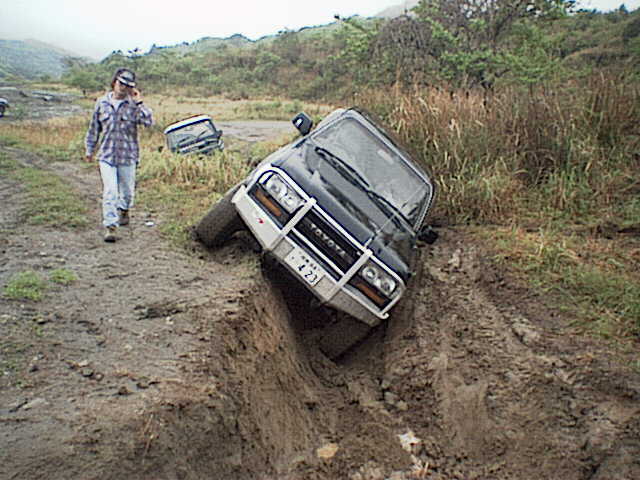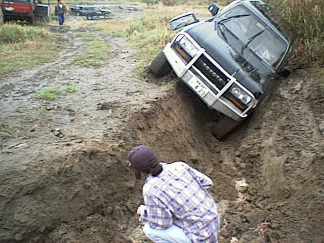 こっちがひっくりかえったシャックルを直している間に野呂さん(LC80)達は、路肩の溝にはまって遊んでました。