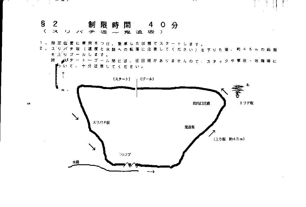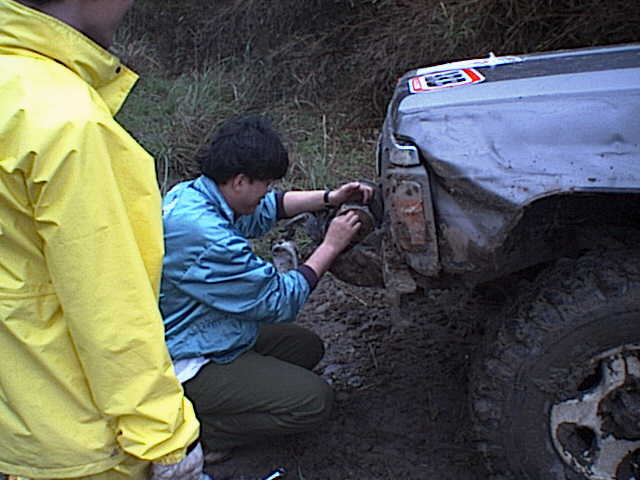 しかし、40分という短い規定タイムをクリアするための「シングルラインのウインチングで45mのドロドロヒルクライム(鬼追い坂)を登る」という作戦は見事に失敗し、サファリのPTOウインチを壊してしまった。さらにレスキュー作業中にジムニーのクラッチも焼けてしまうというおまけ付き。