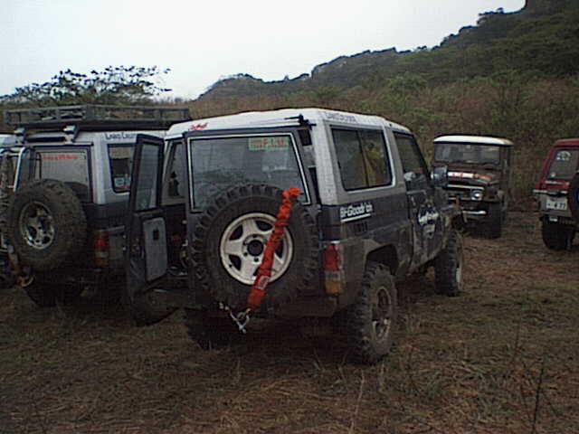 ジムニーは、自走出来ない状態になってしまったので、カーロープでサファリに引かれてここまで辿り着いた。