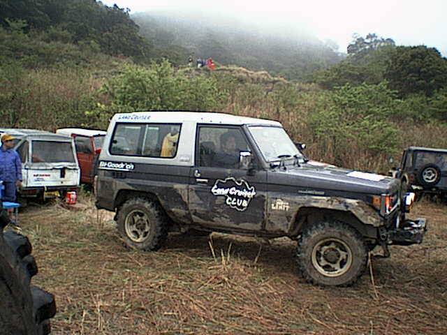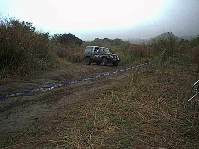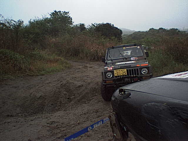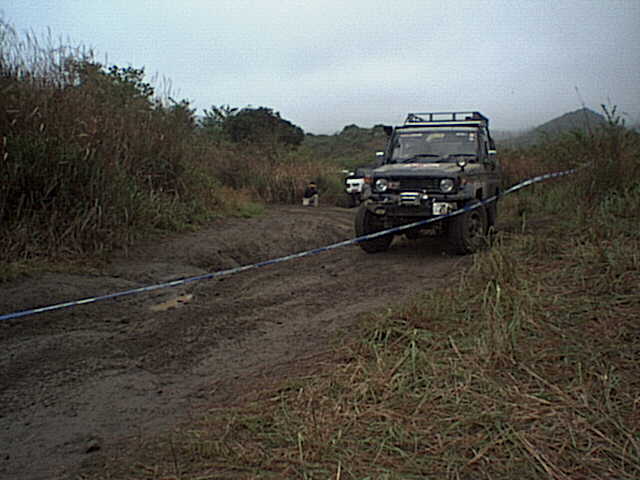 このセクションはまず人間が約1kmのコース(岩盤&急な登りあり)を1周してから、車で逆方向にもう1周してゴールする。この人力での1周がコース状態の下見となるのだが、このタイムが成績を大きく左右するので皆走る。