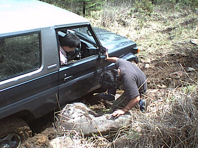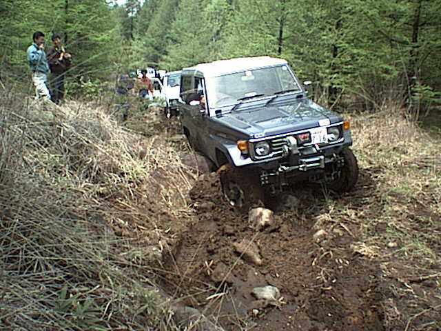 ランクル(HZJ73:Towerさん)も岩につかまった。