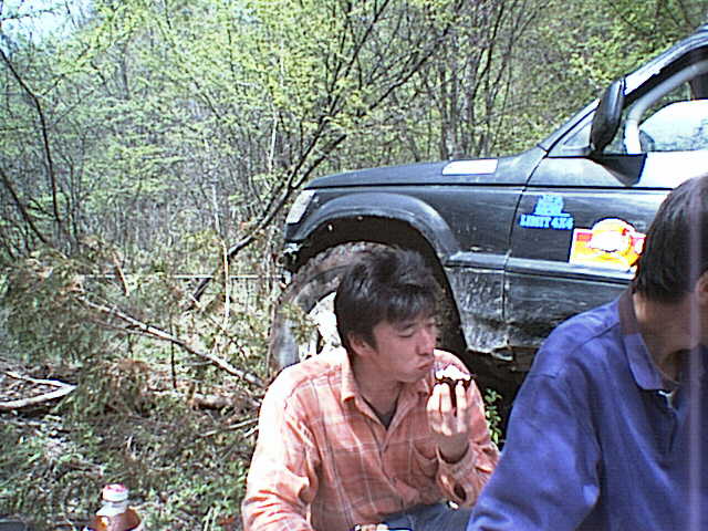 食事の時間。後ろでは1人ウインチングで登っていく。(パジェロJtop:吉村さん)