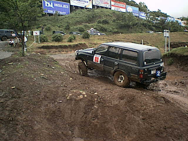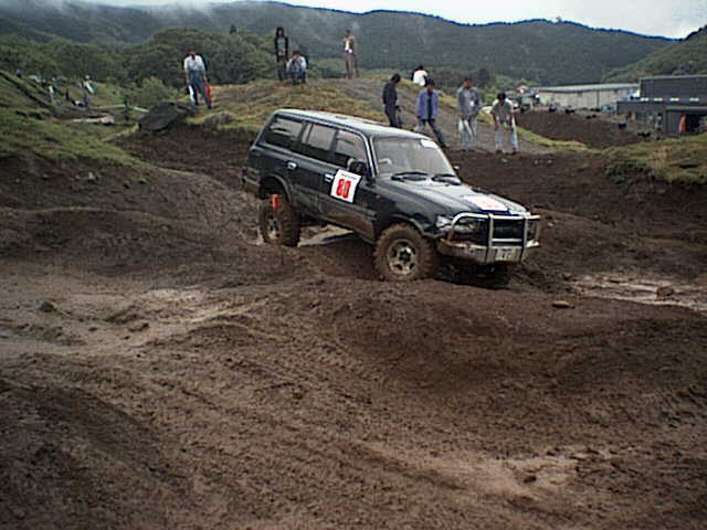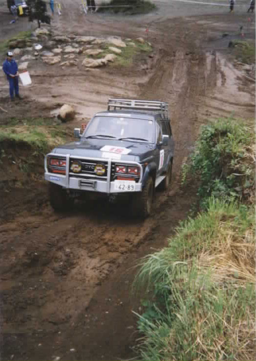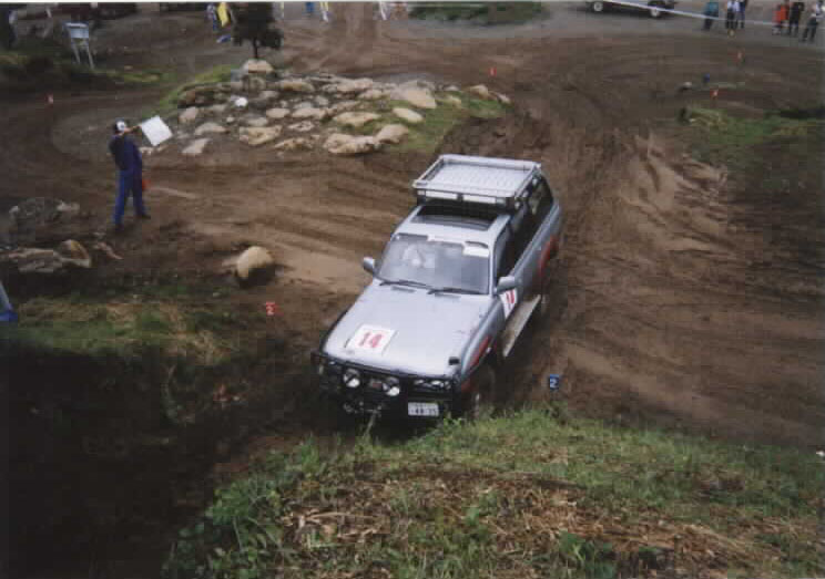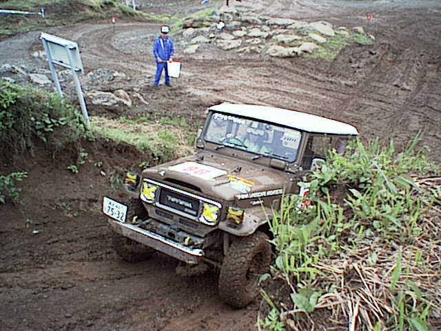 第2セクションの「途中までヒルクライム」を登る宇賀神さんランクル40。