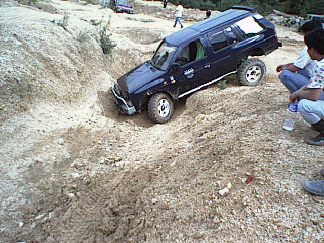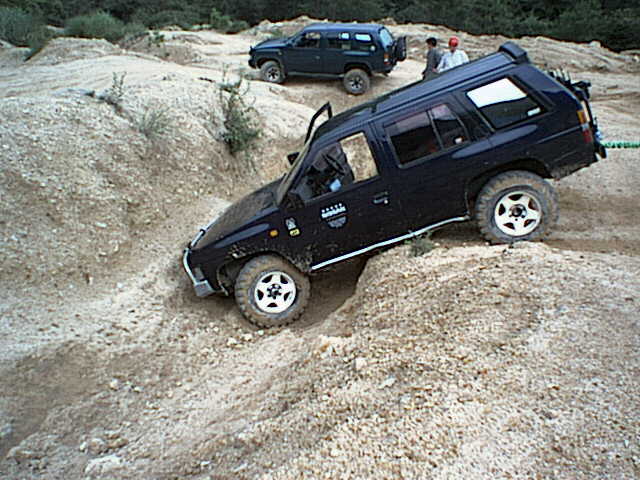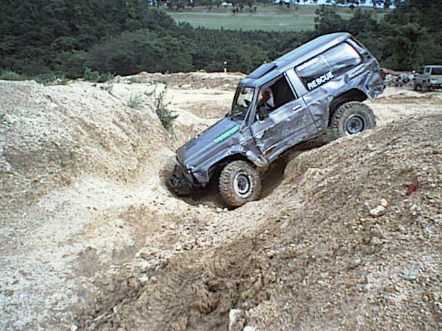 この状態では、オープンデフではバックも出来ず、リアデフロックを入れてバックすると、お腹を軸に回転してまた溝に対して直角の体勢に戻ってしまう。