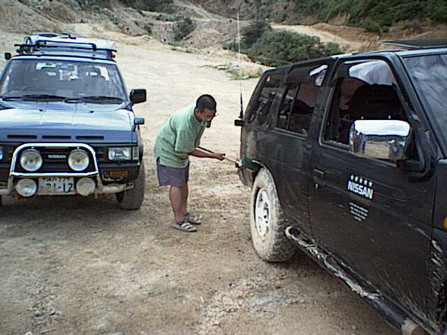 今日の走行は終了。泥を落として帰り支度。
