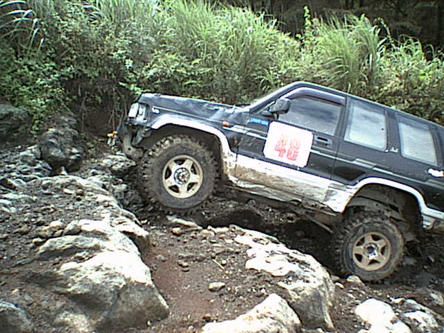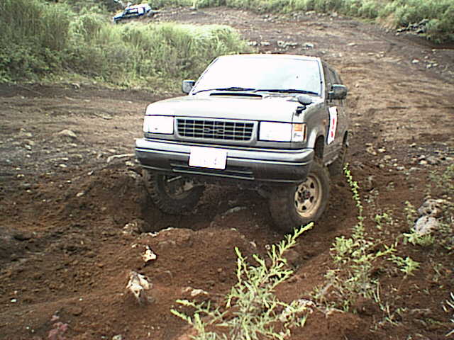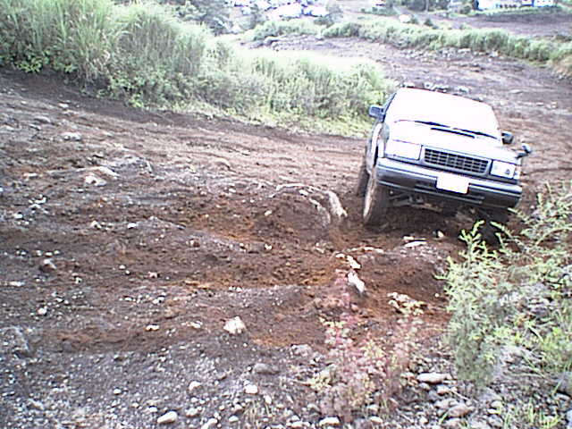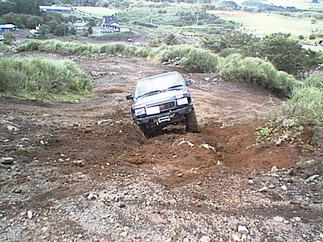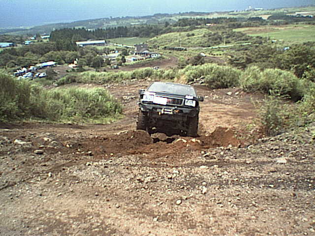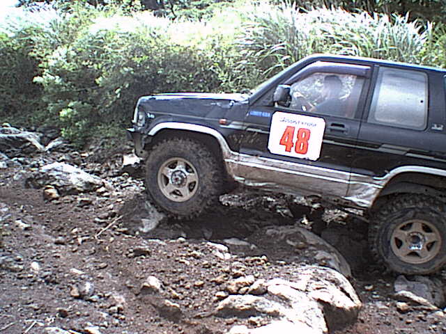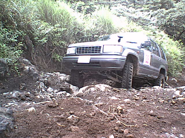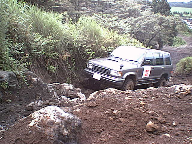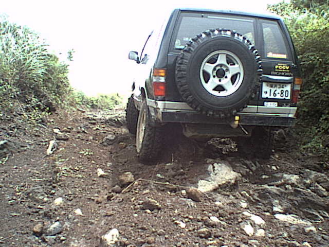 岩の間にふかふかの土の乗ったヒルクライムを走行中。
