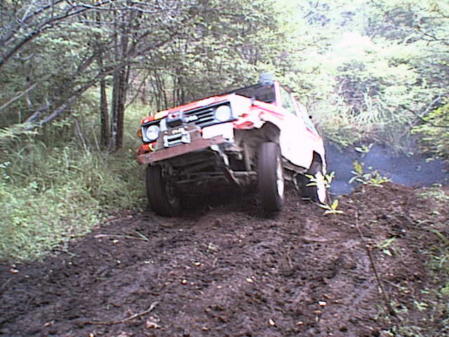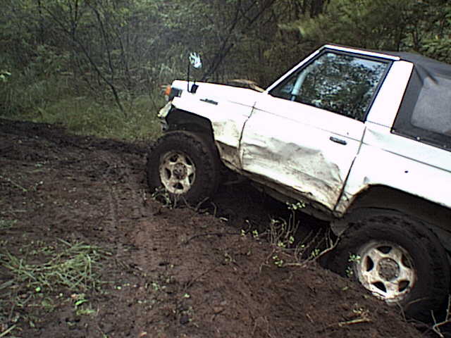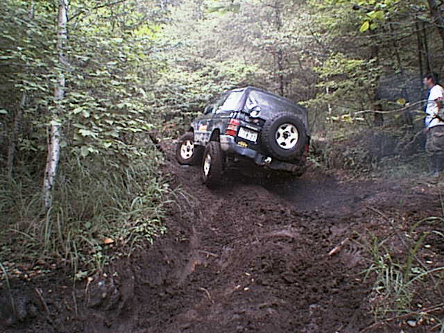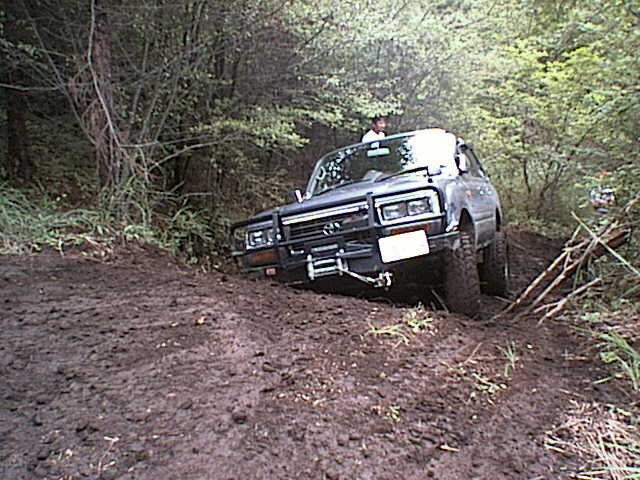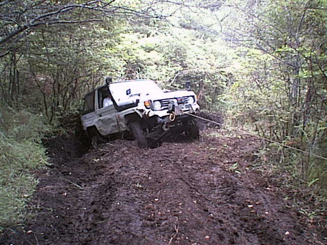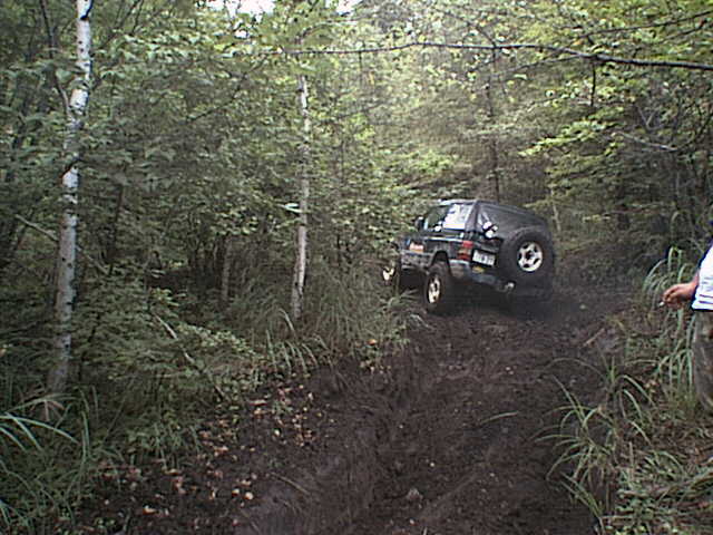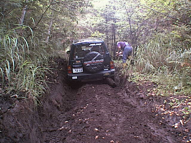 轍の掘れた緩い登りを進むエスクード。