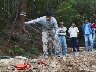 やっとワイヤーがほどけたところでメインアンカーの滑車にワイヤーをセット。