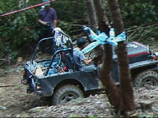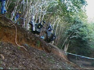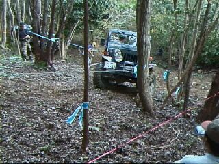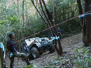 ウインチで斜面を登り右に移動してウインチダウンするセクション。道の崩壊した部分を通過するシチュエーションを想定。