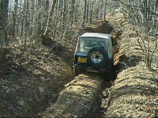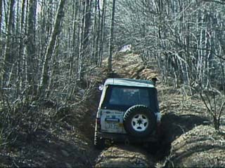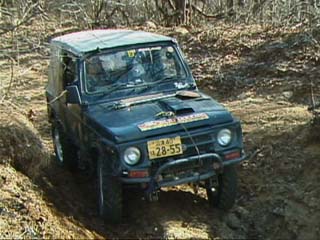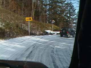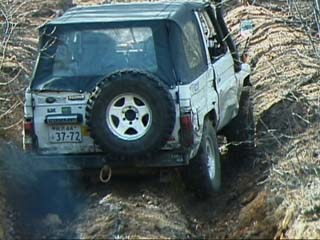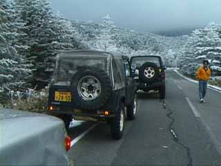 廃道への移動中。山はもう雪景色。 雪道の運転は気を付けましょう。 カサハラ@HZJ70改(売り出し中)轍の深い登り坂を進む。途中何度も腹がつっかえる。 パワーにモノを言わせて土を掻いて行く。 saka@ジムニーも続く。 轍が合わないことを良いことに、とことこと登り切ることが出来た。