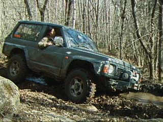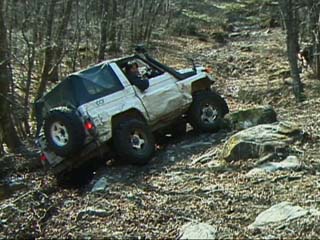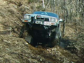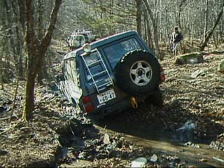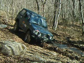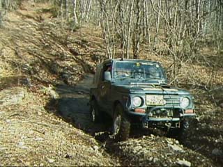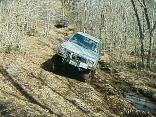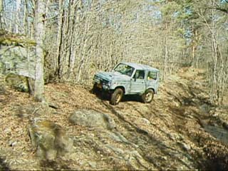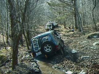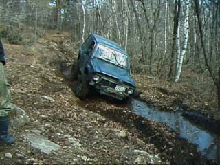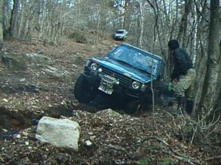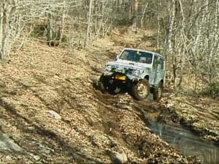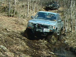 ジムニーではぬかるみはまるとスタックしてしまうのでやはり山側に、