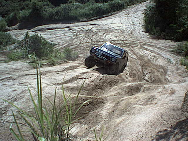 引き起こすためのウインチと、斜面下にずり下がらないようにするためのウインチを掛ける。