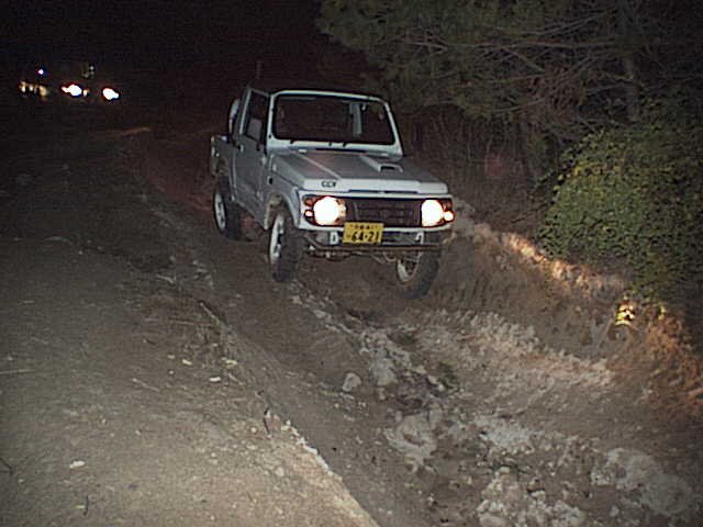 普段は赤いランクル70幌に乗る彼ですが、今日は通勤用?Jー53で遊ぶ。