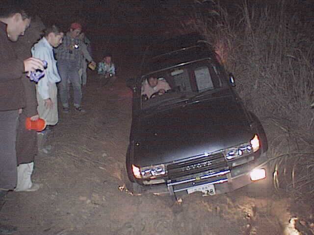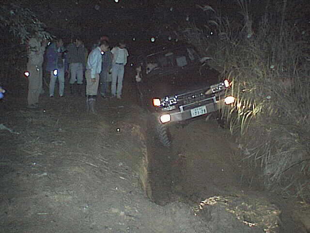 ウインチで後ろに抜いて仕切り直し、2回目は無事泥沼を跨いで越えていきました。