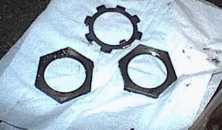 3. ロックワッシャを外して、内側のナットも外側と同様に外します。