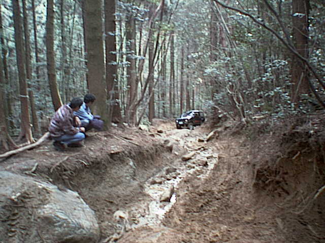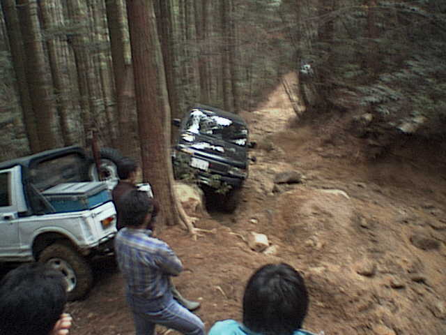大型車(ジムニー比)たちも先行したジムニーを追って岩場に到着。