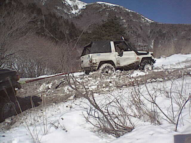 ヒルクライムを登る「サキちゃん」のサファリ。深い雪に苦労しながらも登り切ってしまう。