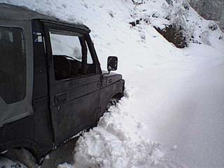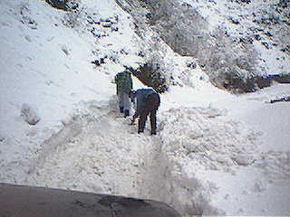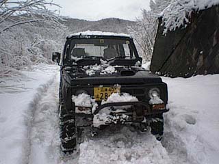 シーズン末期の雪と氷が層になった重たい雪に苦労する。