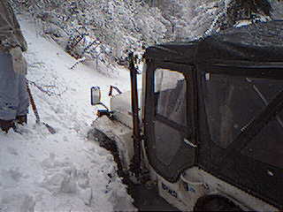 振り返ると追いついてきた後続車が彼方でスタックしている。