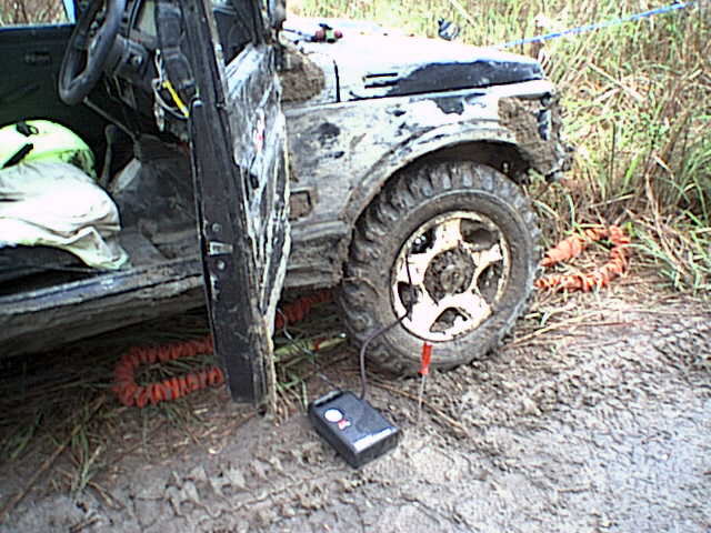ジムニーは、クラッチが焼けたほかに、ウインチング中にバッテリー端子のところで、車内への配線が溶断(繋ぎ直してとりあえず復活)と、タイヤとホイールの間に泥を噛んで一部ビード落ち(コンプレッサーでエアを入れて復活)。