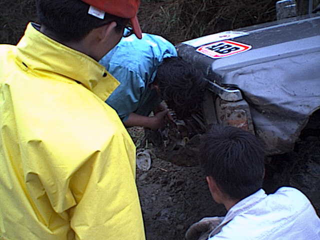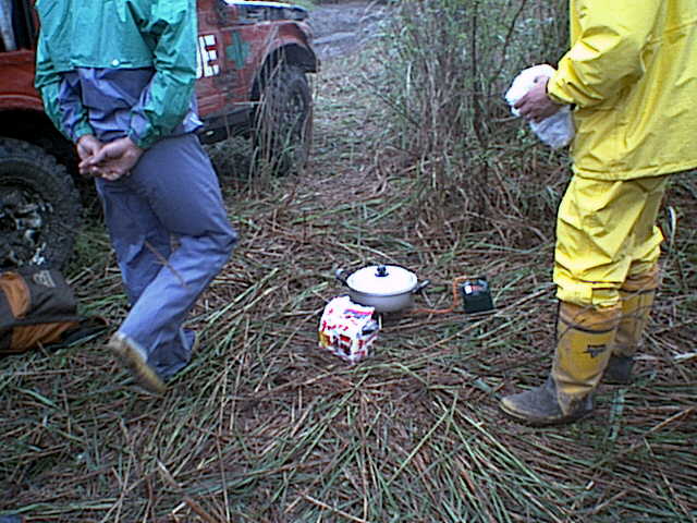 他のチームの人も手伝ってくれてサファリのウインチ修理に当たるが、復活には到らず。