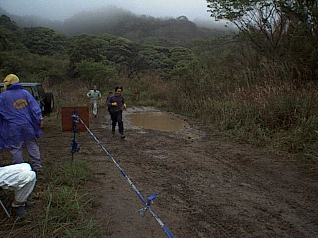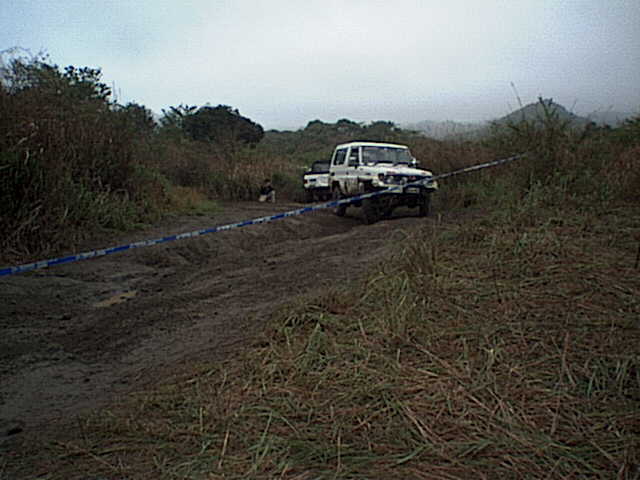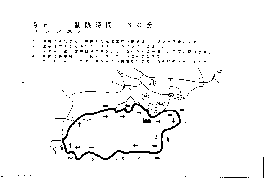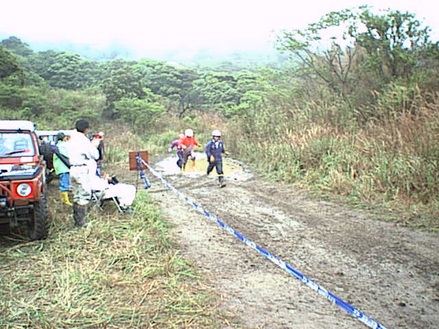 このセクションはまず人間が約1kmのコース(岩盤&急な登りあり)を1周してから、車で逆方向にもう1周してゴールする。この人力での1周がコース状態の下見となるのだが、このタイムが成績を大きく左右するので皆走る。