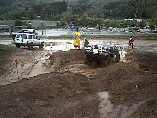 第2セクションの「途中までヒルクライム」を登る宇賀神さんランクル40。